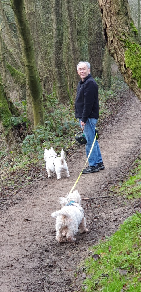 My two Westies out and about once more, but this time with my partner again at Red River Nature Reserve. Caught him unawares this time. He doesn’t get to walk them that often as he’s away a lot of the time, so when weekend comes he gets a turn to take them for a walk. This was taken before the girls had been groomed. They look so much smarter now.