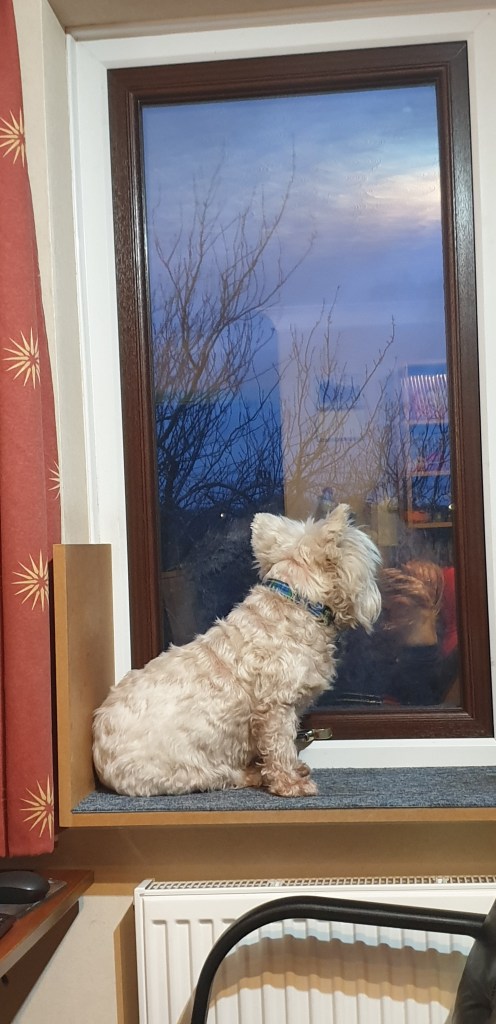 Gracie in one of her favourite positions. Sitting in the window staring out over the world. From this window she can see the whole garden and often spy’s the little critters that intrude upon our garden, like cats and squirrels. When she spots these little critters she goes crazy and wants to go chase them off. It is just easier to let her out in the garden. If I thought she might catch them I wouldn’t let her out. They are just too quick for her.