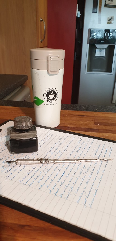 This is just one of my ink pens that I write with. I tend not to write with regular pens as they are not so environmentally friendly nowadays. At least with this one, and my Lamy fountain pens, its only the ink you have to buy. Not the whole thing. With my fountain pens I have a refillable cartridge so the ink then comes in glass bottles. No plastic needed.
