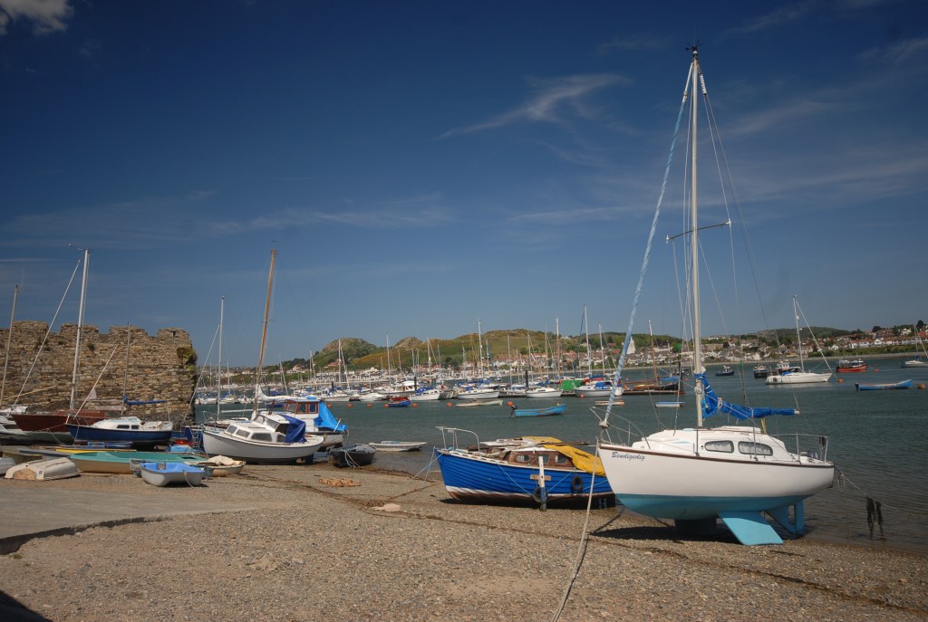 The harbor at Conwy is a lovely site to see, with the end of the wall round the town just to the left of the photo. Just to the left, out of sight in this photo, is the smallest house in Britain, a big tourist attraction.