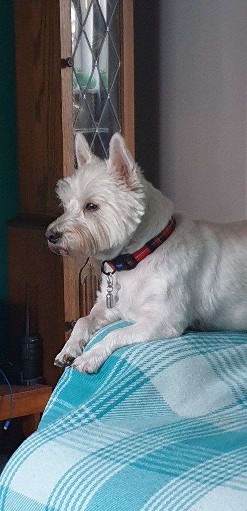 This is our Millie keeping watch out the window. She is always either watching the TV for any animal movement or looking out the window for anyone that might walk passed. She is always alert for something to bark at. She has just come out of surgery to remove a tumor from her behind, a 2 cm tumor as well. Luckily it turned out to be nothing to worry about. And she is back to normal, running around and chasing things. She will be around for a good few years to come now.
